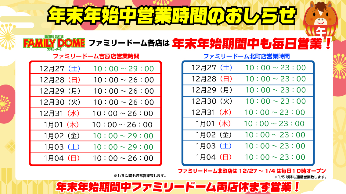 ホーム  >  ファミリードーム全店  >  年末年始の営業時間のご案内