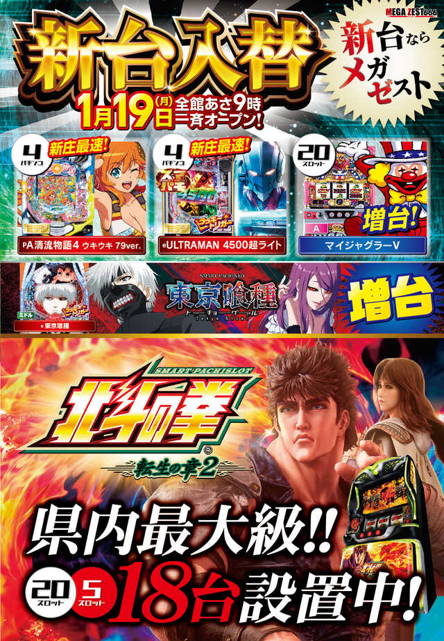 ホーム  >  メガゼスト666  >  1月19日(月) 新台入替