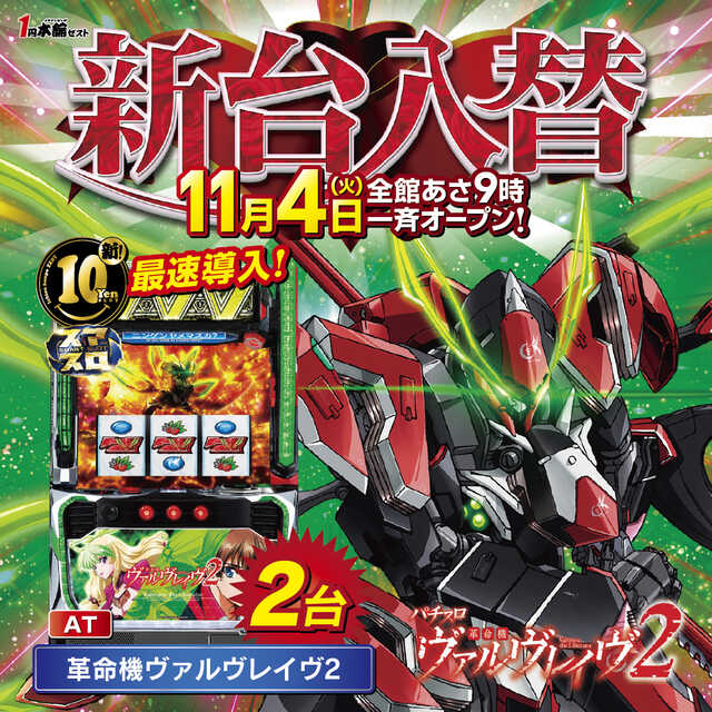 11月4日(火) 新台入替 革命機ヴァルヴレイヴ2最速導入!