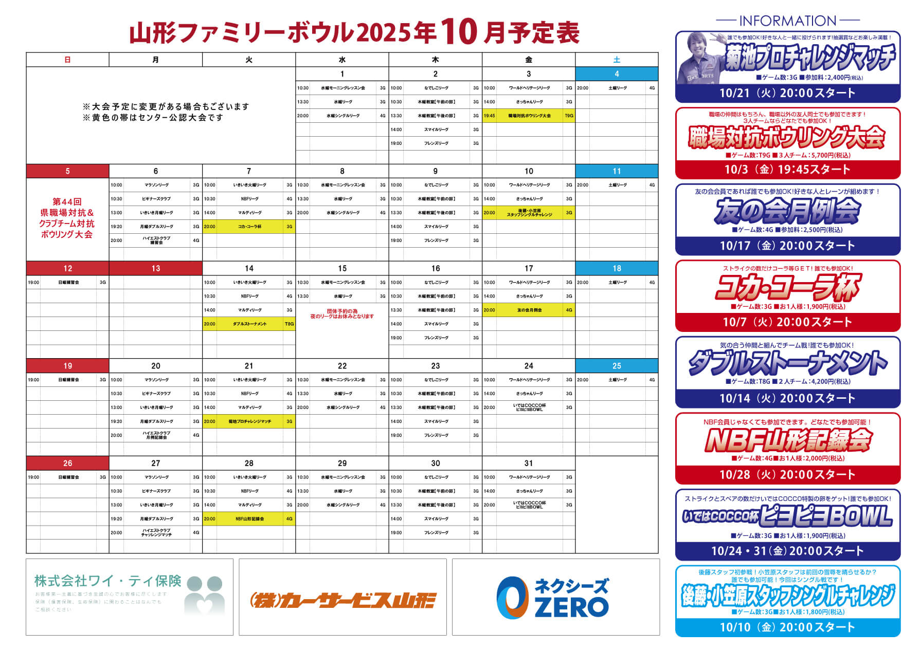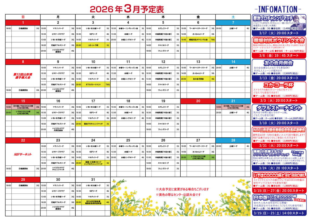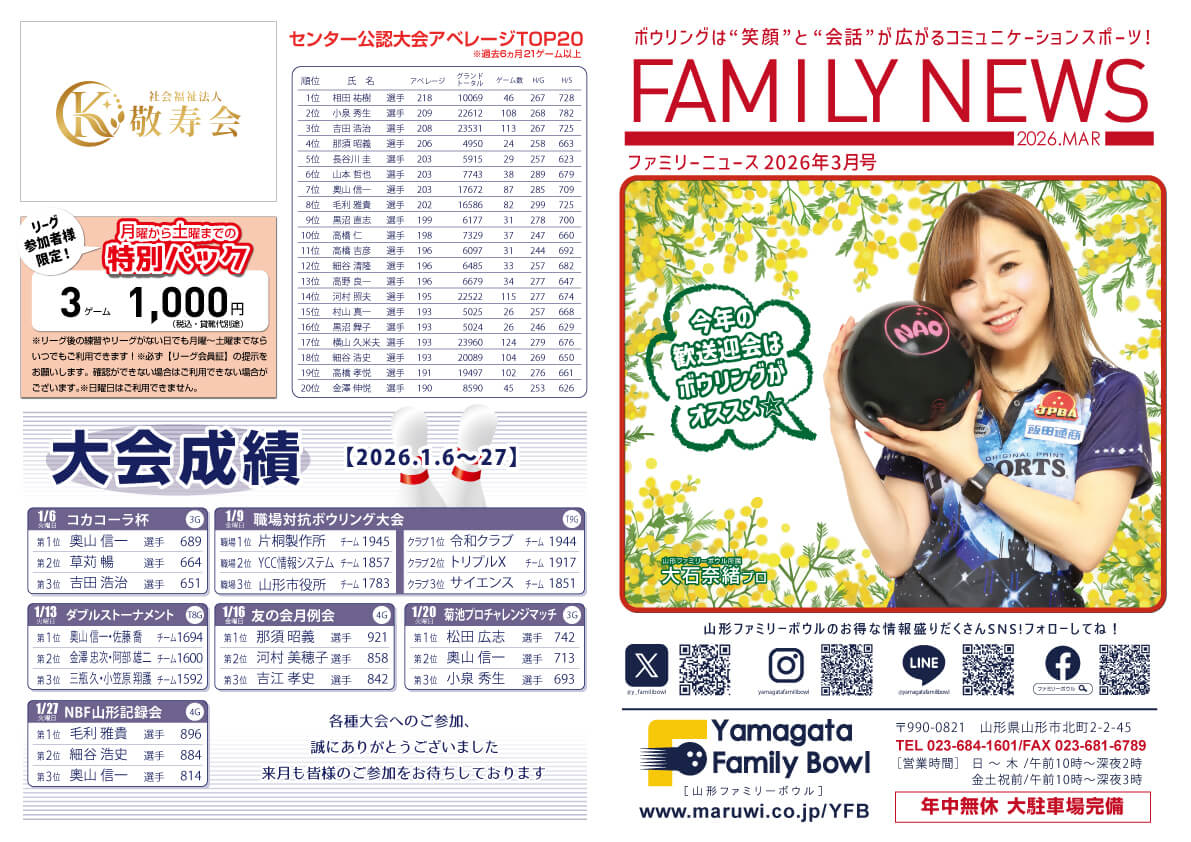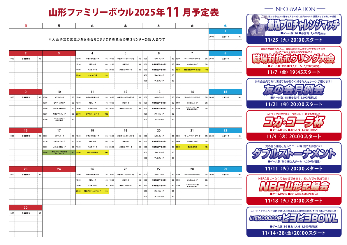 山形ファミリーボウル安定の大人気大会! 「いではCOCCO杯 ピヨピヨBOWL」 半澤鶏卵様とのコラボ大会となっております。 さらに毎回抽選で10名様にプレゼントが当たります。 半澤鶏卵様もよろしくお願いします!